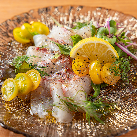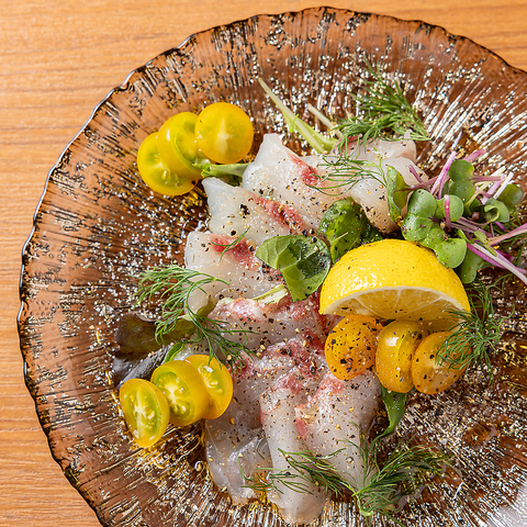毎朝仕入れる天然鯛など、鮮度抜群の魚介を使用した「鮮魚のカルパッチョ」は必食の逸品。素材本来の甘みを引き立てる自家製ソースとの相性も抜群です♪また、リピーター続出の人気メニューであるパスタもおすすめ!今後は自家製カンパーニュを使った特製サンドイッチも新登場予定ですので、新しい美味しさとの出会いにもご期待ください!