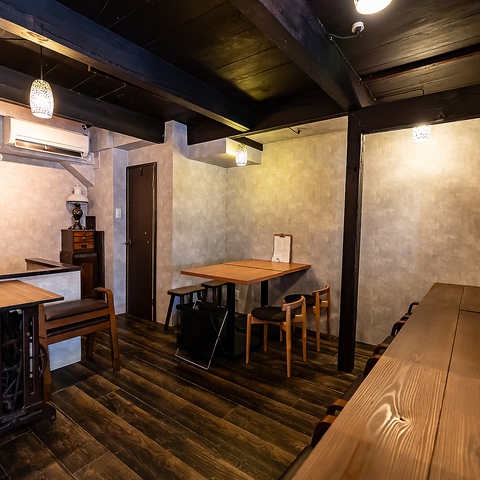 古民家をリノベーションしたアンティーク調の内装と、防空壕跡を活かした半地下のデザインが特徴☆アクセスも便利な立地にあり、昼は光がやさしく差し込む心地よさ、夜は照明の陰影で味わう大人時間をご提供◎テイクアウト対応やペット同伴対応など、細やかなサービスも充実し、心からくつろげる場所を目指しています。