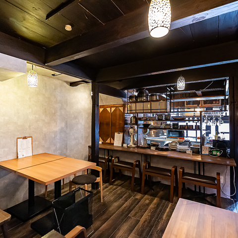 お一人様や少人数でのご利用に最適なカウンター席やテーブル席をご用意♪カウンター席では一人でも気軽に来店できるアットホームな雰囲気が魅力◎テーブル席は落ち着いた調和のあるインテリアと木の温もりを感じる店内で、居心地の良さ◎ペット同伴可能(中型犬まで、事前相談制)なのも嬉しいポイントです。