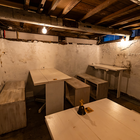 貸切対応可能な当店は、8名様以上から相談可能です。大型宴会でもゆったりと過ごせるスペースを確保できます。防空壕跡を活かした半地下の空間は独特な雰囲気で特別感を演出♪照明や装飾はアンティーク調でまとめられており、カジュアルさと非日常感を同時に楽しめるのがポイント◎女子会や会社の集まりにもおすすめです!
