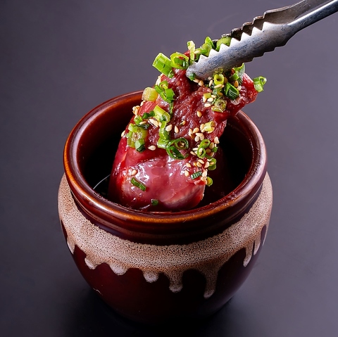 飲めるくらい柔らかく新鮮なお肉をレア目で焼き上げ、とろ~り卵黄と絡めて召し上がって頂く当店一押しの商品です☆これを食べなきゃぼんずは始まらない!!