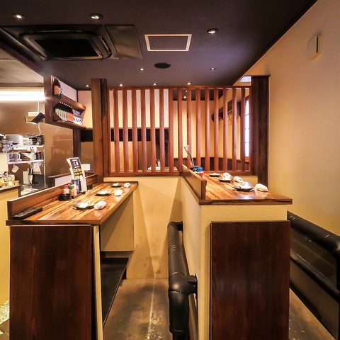 当店に入って右奥にはL字のカウンター席を完備!毎日仕事帰りのおひとり様やご友人同士のお客様がご利用されてます!掘りごたつ席なので、長い時間ゆっくりとお過ごしいただけます!