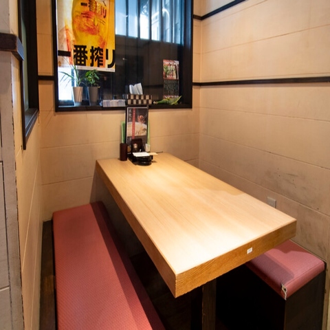 温かみのある照明と木目調のテーブルが、日常の喧騒を忘れさせてくれる癒やしの空間を提供いたします。フラットなベンチシートのお席もご用意しており、小さなお子様連れのご家族でも並んで座りやすく、安心してお食事をお楽しみいただけます。ぜひ、心ゆくまでお寛ぎください♪