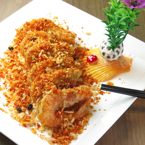 大ぶりな海老に、にんにくと香ばしい特製スパイスをたっぷり絡めてサクッと揚げた人気メニュー!海老のプリプリとした食感と、殻ごと食べられる濃厚な旨味がたまらない一品です。スパイシーな風味が後を引き、お酒のあてにぴったり!シェアして楽しむのにも最適ですので、ご宴会や飲み会のお席にぜひどうぞ。