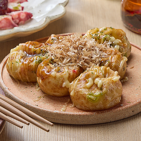 お酒のお供に、丁寧に焼き上げる熱々のたこ焼きはいかがですか?鮮度にこだわった大粒のタコと、出汁の香りが広がる生地は、まさに職人技の結晶。定番のソースから、お酒が進む創作アレンジまで多彩にご用意しました。カウンターで小粋につまめる一皿が、二次会の会話をより一層弾ませてくれるはずです。