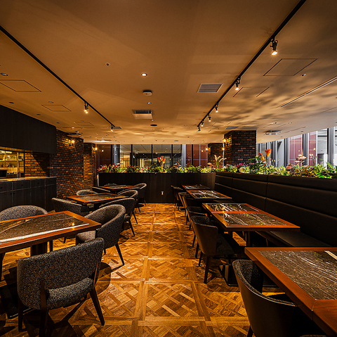 レンガ壁とグラフティアートが彩る、ニューヨーク・ブルックリンを思わせる洗練空間。高級店を彷彿とさせる円卓や落ち着いた個室、団体でも楽しめるゆとりある席配置。上質でありながら肩肘張らない、“手の届く非日常”を味わえる特別な時間を。