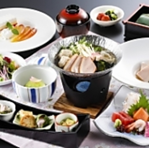 四季折々の厳選した食材を使用し、素材本来の持ち味を最大限に引き出す調理法にこだわっています。春には桜海老や筍、わかさぎといった季節を象徴する味覚をふんだんに取り入れ、目でも舌でも楽しめる一皿を追求。伝統的な和の技法と、洋の華やかさが融合した独自のスタイルで、訪れるたびに新しい発見を提供いたします。