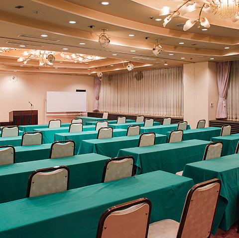最大252名様までご利用いただける広々とした宴会場は、大学のゼミやサークル活動、大人数での会議に最適です。落ち着いた雰囲気の中で、ご慶事やお祝い、結納といったおめでたいお席にもふさわしい格調高さを備えています。同窓会など、久しぶりに顔を合わせる大切な仲間との賑やかな宴にも重宝いたします。