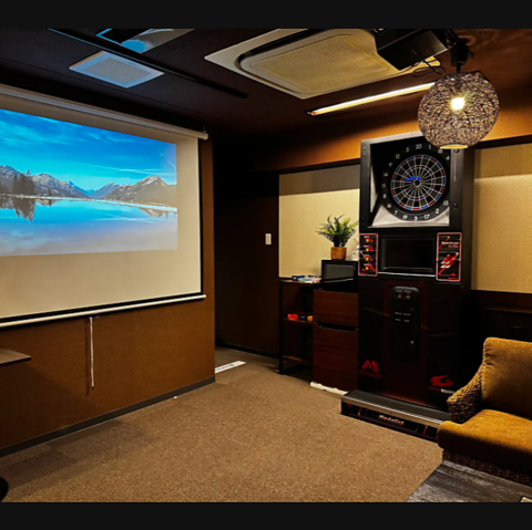 プロジェクターで映画鑑賞やスポーツ観戦など歓送迎会から二次会など様々なシーンで利用できるレンタルスペースです!
