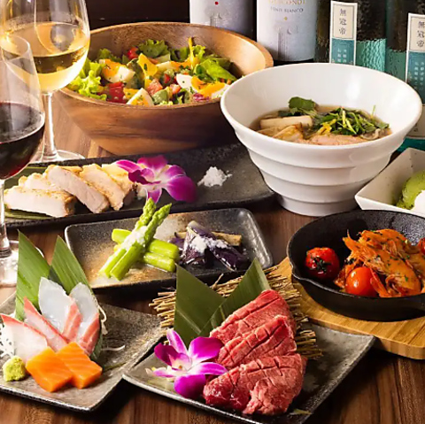 個室での接待・職場の歓送迎会・ご家族の誕生日・パートナーとの記念日など、様々なシーンに合わせたコースは人気料理が勢揃いで4900円(税込)~!飲み放題ではビール・カクテルのほかノンアルコールとソフトドリンクもご用意しておりますので、強いアルコールが苦手なお客様も一緒にご宴会をお楽しみ頂けます。