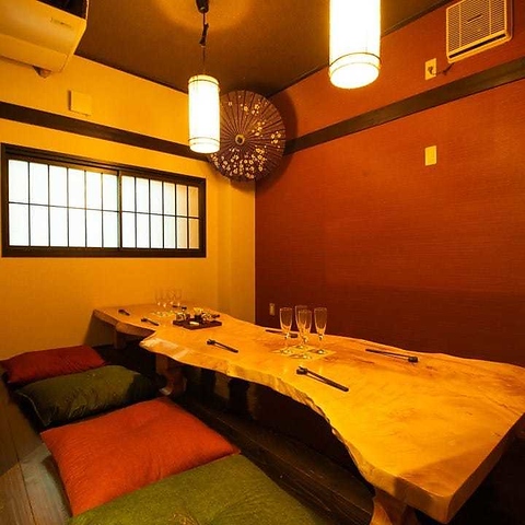 【個室小上がり席】お座敷タイプの和個室は最大10名様でご利用可能です。ゆったりくつろぎのひと時をお過ごし頂けます。職場の暑気払い・お世話になった方の送別会・地元の同窓会・女子会など様々なシーンでご利用ください。団体様のご利用相談も随時承りますので、日時・人数・ご予算など店舗までお気軽にご相談ください◎