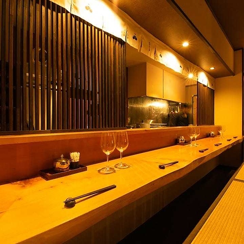 【臨場感ある人気席】カウンターの目の前は調理場なので、料理人の手早い料理工程を眺めることができます。お一人様でのサク飲みも大歓迎◎仕事終わりや休日の晩酌にもお気軽にお立ち寄りください!