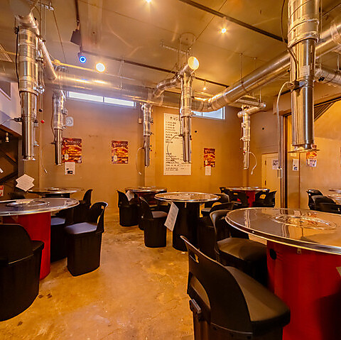 ドラム缶テーブルが並ぶ、落ち着いた雰囲気のジンギスカン専門店です!