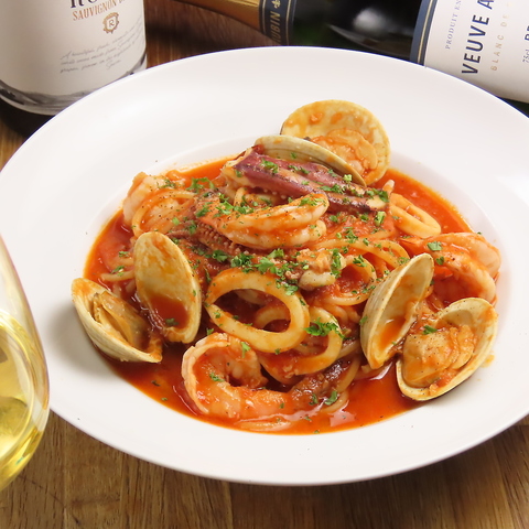 豪華なディナーのひととき。水槽から出したばかりのオマール海老やぷりぷりの海の幸がたっぷり入ったパスタ。さらに新鮮な生牡蠣や焼き牡蠣はレモンとともに。色とりどりの野菜や、香草が彩るプレートは、見た目にも美しく、食卓を華やかに演出。ワインとともに、特別な夜を楽しむにはぴったりの一品です。