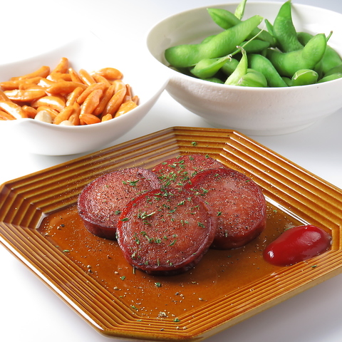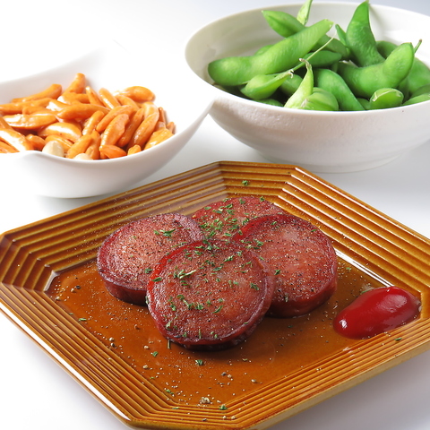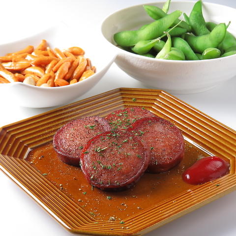 (柿ピー、えだまめ、ソーセージ、)
