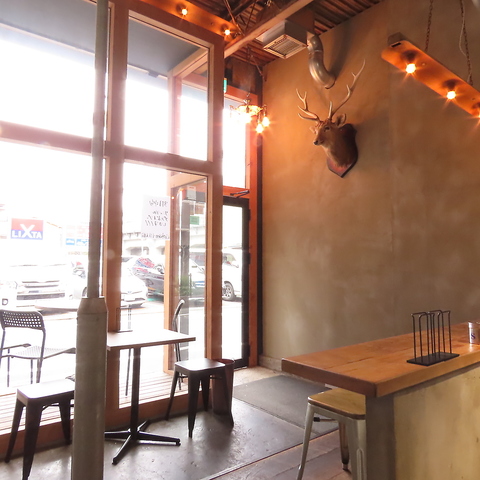 お店は木造で、照明が暖色系の落ち着いた雰囲気なので、大人もお子様もリラックスして過ごせます。打ちっぱなしの壁がカジュアルさとお洒落さを演出しています☆どなた様もお気軽にどうぞ!