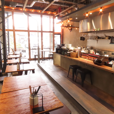 天井が高く開放的な空間は、どなた様も圧迫感を感じることなく美味しいお食事をお楽しみいただけます。加えて外からも見えるガラス張りの作りはおひとり様から女子会、大人数の宴会までどんなシーンにもぴったり◎特別な雰囲気を演出しています♪