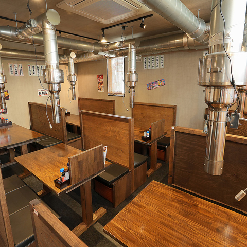 店内は木目調を基調とした落ち着きのある雰囲気。柔らかな照明が心地よく、ホルモンの香ばしい香りと相まって“くつろぎの時間”を演出します。一人焼肉&飲みでも◎グループでも過ごしやすく、日常を少し忘れられる大人の隠れ家です。