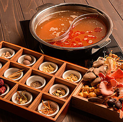 美容と健康を意識する方に最適な、薬膳マイスター監修の自家製スープが自慢です。数十種類の薬膳エキスを抽出した麻辣と白湯のダブルスープに、免疫力向上が期待できる数十種類の希少な珍しいキノコをたっぷりと合わせてお楽しみいただけます。身体の中から整う非日常体験をどうぞ。自分へのご褒美に、食べるエステを。ご予約はお早めに!