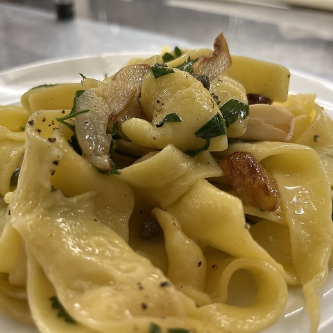 形や食感が個性的な手打ち生パスタは、作り置きせずオーダー後にひとつひとつ成形。季節やソースによって食感を変え、最も美味しくご提供します。マンマの温もりあふれる郷土料理・パスタが日替わりで登場します。