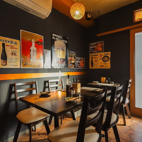 少人数の飲み会や食事会に最適なテーブル席です。串揚げや一品料理を囲んで、仲間とワイワイ楽しめます。おしゃべりを楽しみながらお酒を傾けたり、料理をシェアしたり、程よい距離感でくつろげる空間です。