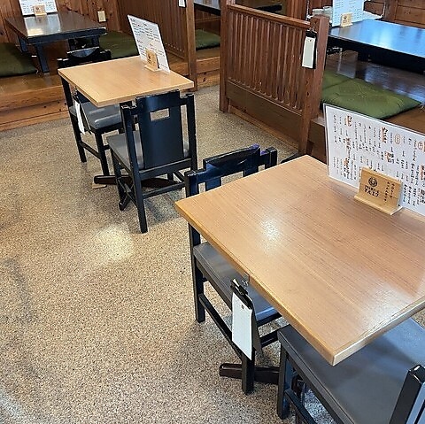 広々としたテーブル席は、ご友人との飲み会やご家族でのお食事など、多様なニーズに合わせてご利用いただけます。清潔感のある店内が心地よく、どのお席に座ってもリラックスしてお食事が楽しめるレイアウトが魅力です。美味しい料理とお酒を囲んで、賑やかで楽しいひとときを演出いたします◎