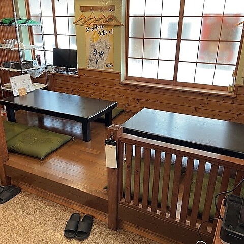 店内には、靴を脱いでゆったりとお寛ぎいただける小上がり席を完備しております♪足を伸ばしてリラックスできるので、長時間の宴会でも疲れにくく、小さなお子様連れのご家族やご友人同士の集まりにもぴったりです。まるでお家にいるような心地よさを感じながら、自慢の料理を心ゆくまでお楽しみください。和やかなお食事をお約束いたします◎