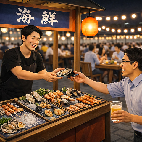 名古屋の食を支える「柳橋中央市場」から毎日届く、跳ねるほど新鮮な海の幸。そして、その目利きで選び抜かれた極上の肉。市場の活気をそのまま一皿に凝縮しました。刺身で味わう海の恵み、炭火で滴る肉の旨み。まるでお祭りのような雰囲気の中でBBQを心行くまでお楽しみいただけます。