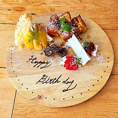 誕生日・記念日・送別会など、大切な日のお祝いにピッタリ◎メッセージ入りデザートプレート(4種盛り)をご用意しております!ご希望のメッセージをお入れすることができるので、サプライズ演出にいかがでしょうか?大切な日のお祝いは、ぜひ当店で◎