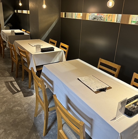 静かに灯る間接照明と、深みのある色調でまとめたシックな店内となっております。“ここに座るだけで気持ちが整う”ような落ち着きを生み出します。店内に広がる柔らかな空気は、日常の喧騒からそっと切り離してくれる大人の隠れ家のように落ち着きが特徴的な店内でございます。