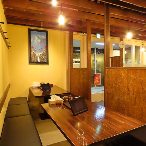 | テーブル | 2名様×2 | さらに、テーブルを繋げれば最大10名様までのグループ利用も可能!スパイス香る賑やかな宴会や、会社帰りの打ち上げなど、シーンに合わせてフレキシブルに対応いたします。 |