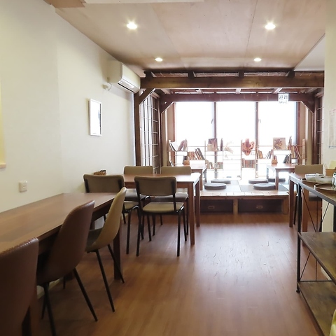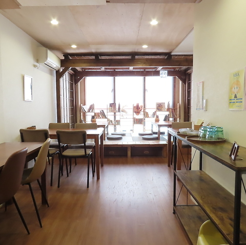 店内にはゆったり座れるテーブル席が並び、グループ利用も快適です。席間が広めにとられているため、大人数でも圧迫感を感じず、会話を楽しめます。温かみのある木の家具とやわらかな照明が、アットホームで落ち着きのある雰囲気を演出☆大切な時間を心地よく過ごせるよう、細部にまで配慮された空間です。