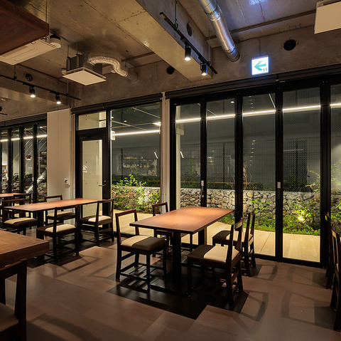 スタイリッシュで開放感のある店内は、清潔感にあふれ、女性のお客様にもご好評いただいております。座席の間隔をゆったりと確保しているため、周りを気にせずにお食事や会話を楽しめるのが嬉しいポイントです。貸切のご相談も承っており、最大25名様までのまとまった人数でのご宴会にも対応可能です。