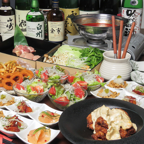 ご予算やシーンに合わせて選べるコース料理を豊富にご用意しております。名物のチキン南蛮や種鶏炙り焼きを盛り込んだ4000円(税込)コースをはじめ、メインに「水炊き」か「すき焼き」を選べる5000円(税込)・6000円(税込)の豪華プランもございます。さらに、+2500円(税込)や+3500円(税込)で2時間飲み放題の追加も可能!