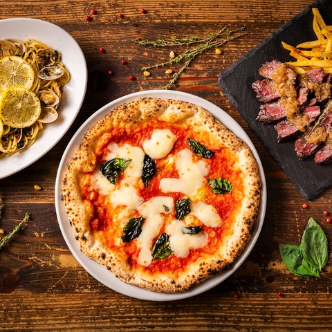 本格ピッツァは、人気のマルゲリータ550円や、世界三大珍味!黒トリュフのピッツァ1199円など全8種!