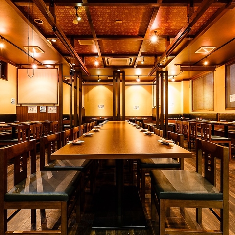 団体様のご宴会に最適!!お店半分のフロア貸切が可能なこのエリアは40名様から対応可能♪周りを気にせずご宴会ならこのお席がオススメです◎一日1組限定となりますので、ご予約はお早めにご相談ください♪思い出をみんなと共有できます!!全体貸し切りは60名様からご相談可能です♪まずはお気軽にお問合せください♪