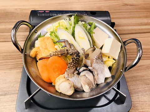 旨辛チゲ鍋、海鮮ちゃんこ鍋、鶏肉とキノコ鍋の三種類のほか、ヘルシーな湯豆腐もご用意◎海鮮ちゃんこ鍋はワタリガニ、カキ、エビ、ホタテ、白身魚などふんだんに使用し、出汁の旨みがたまりません☆〆のうどんセットor雑炊に合わせて最後の一滴まで飲み干しちゃいます!旨辛チゲ鍋もチーズリゾットと相性ピッタリ◎