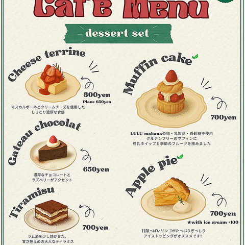 - ※VEGAN:植物性の食材のみを使用しています