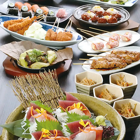 飲み放題付きコースが豊富。40周年特別コースなら飲み放題120分。お酒と逸品料理をご堪能ください。
