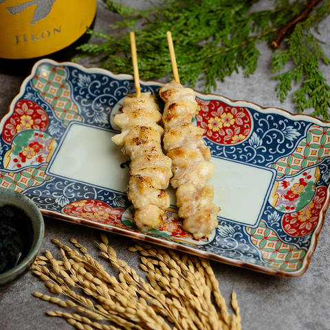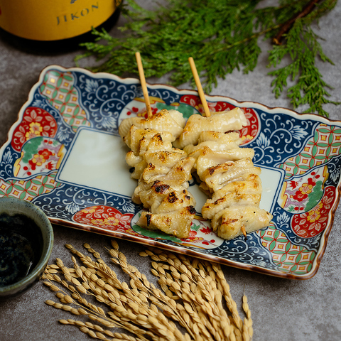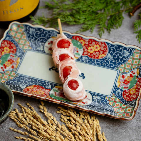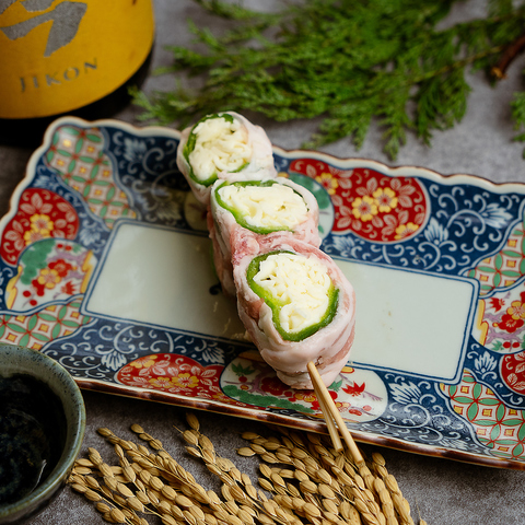 炭火でじっくり焼き上げる野菜巻き串は、豚バラの香ばしさと、旬野菜の瑞々しさが重なり合う当店の名物料理。トマトやアスパラ、レタスなど、季節の彩りをそのまま巻き込んだ串は、味はもちろん見た目にも美しく、女性のお客様や健康志向の方にも人気です。日本酒や焼酎と合わせれば、食事としても酒の肴としてもご満足いただけます。