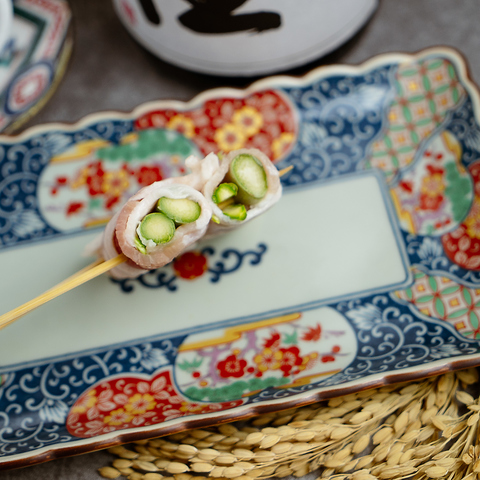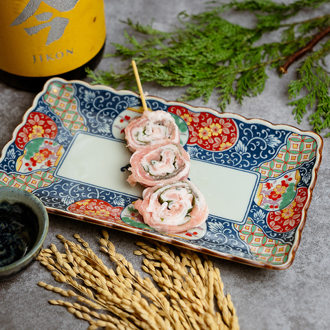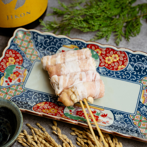 炭火で包む、旬と旨み。見た目も味わいも美しい巻き串。