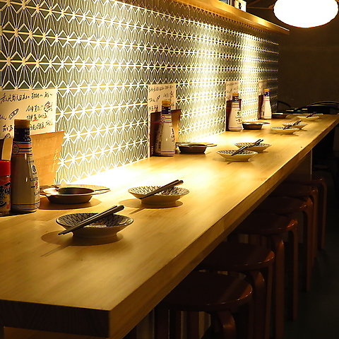 【落ち着きのあるカウンター】地下鉄麻生駅から徒歩5分の駅近でアクセスも便利!落ち着いた雰囲気のカウンターは一人飲みにもピッタリ♪プライベートも宴会も様々なシーンでご利用いただけるお店です!お気軽にお問合せください♪