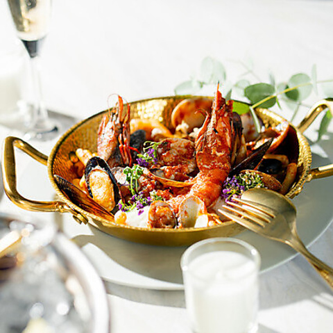 都会のペントハウスをイメージした店内は、モダンでスタイリッシュな大人の遊び場。広々としたテーブル席は、女子会やビジネス、少人数グループでのパーティーにも最適です。オープンキッチンから漂う活気ある香りと、洗練された音楽が心地よく響く空間で、当店自慢のシーフードイタリアンを心ゆくまでお楽しみいただけます