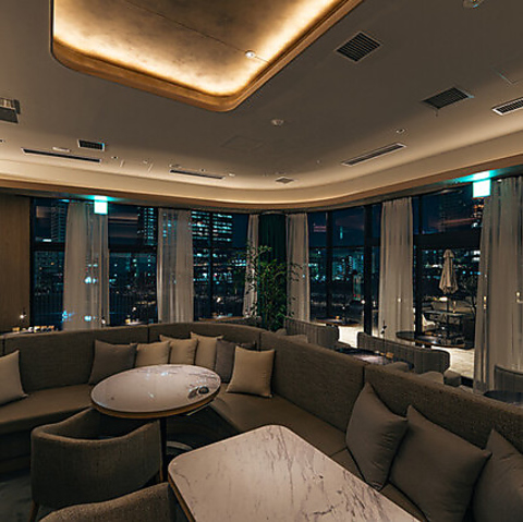 地上3階、うめきたエリアの変貌し続ける絶景を180度パノラマで一望できる特等席です。特に窓際のペアソファ席は、宝石箱のような夜景を二人占めできる一番人気の空間。落ち着いた照明と洗練されたインテリアが、大切な方との記念日やデートをより一層ドラマチックに演出いたします。至福のひとときをお過ごしください。