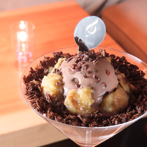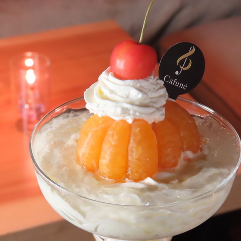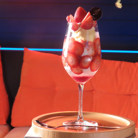 鮮やかな苺が魅力的な【いちごの夢パフェ】甘酸っぱいマリネ苺が口の中で弾け、フランボワーズの香りが広がります☆やわらかなクリームとシトラスジュレが絶妙に絡み、サクサクのフィヤンティーヌが楽しい食感を演出します!他にも贅沢なフルーツを使用したパフェメニューをご用意しておりますので是非ご賞味ください♪