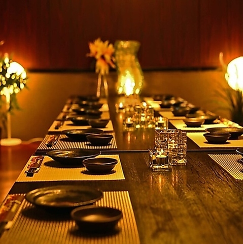 2名様からご利用いただけるテーブル個室や、足を伸ばしてリラックスできる掘りごたつ式の団体個室を完備しています。人数に合わせて壁を調整できるため、女子会や接待、大人数の会社宴会まで幅広く対応可能です。最大100名様までの貸切も承っており、周囲を気にせず一体感のあるパーティーを楽しめる環境が整っています。