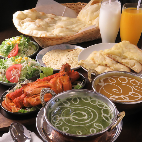 ランチからディナーまで多彩なセットをご用意。選べるカレーや特大ナン、サイド料理も豊富に選べます!