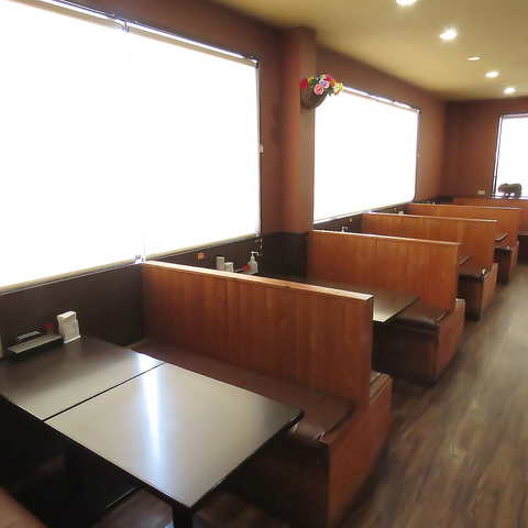 清掃の行き届いた明るい店内は開放感抜群。ご家族連れや女子会、お一人様も周囲を気にせず寛げます。
