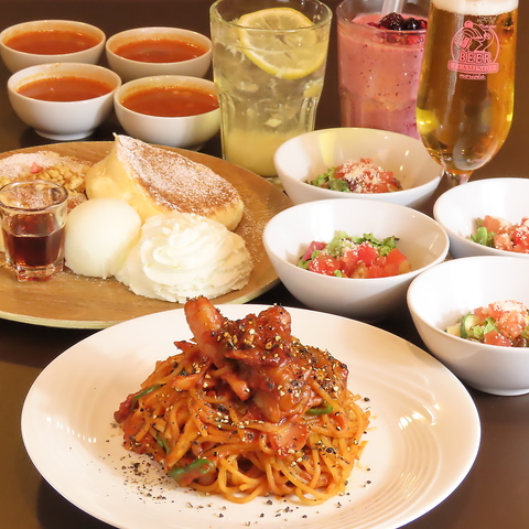 ふんわり食感がたまらない各種「パンケーキ」は1430円(税込)~ご提供しております♪生地の美味しさをダイレクトに感じられる、当店自慢の定番スイーツです◎お腹がいっぱいでもペロリと食べられる軽やかさで、食後のデザートにも大人気です!季節のフルーツ乗せなどバリエーションも豊富なので、お好みの味を見つけて下さい