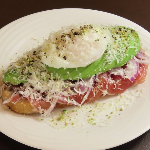 爽やかな朝のスタートに大人気のモーニングメニュー「アボガド生ハムエッグトースト」♪クリーミーで濃厚なアボガドと生ハムの程よい塩気、とろ~り卵のまろやかさがサクサクに焼き上げた自慢のトーストと絶妙なハーモニーを奏でます♪栄養満点でボリューム感もしっかりあるので、充実した一日の始まりにぜひ当店でゆったりとお楽しみください◎